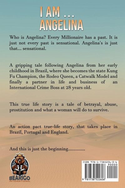 I AM... ANGELINA Who is Angelina? Every Millionaire has a past. It is just not every past is sensational. Angelina's is just that... sensational. A gripping tale following Angelina from her early childhood in Brazil, where she becomes the Kung Fu State Champion, a Rodeo Queen, a Catwalk Model, and finally a partner in life and business of an International Crime Boss at 28 years old. The true-life story is a tale of betrayal, abuse, prostitution, and what a woman will do to survive. An action pact true life story, that takes place in Brazil, Portugal and England. And this is just the beginning............. A journey through betrayal, abuse, prostitution, and the criminal underworld - Book 1