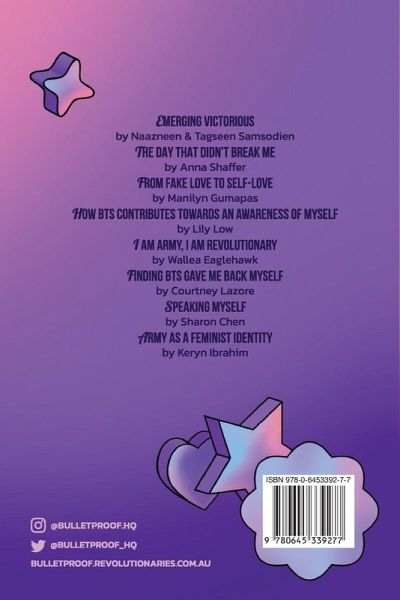The identity of ARMY, the dynamic global fanbase of Korean music group BTS, is complex and nuanced. I Am ARMY locates, documents, and celebrates just some of the unique identities within the diverse fandom. A collection of autoethnographic essays, each chapter in this book contains an ARMY experience which transcends the personal entirely. As such they sit as part of a broader socio-political examination and critique of the world we live in today. I Am ARMY gives the reader a chance to immerse themselves in the world of an ARMY living an entirely different life, and the opportunity to understand just how socially constructed and influenced our lived-experiences truly are. Co-editor Eaglehawk frames the socio-political stories in I Am ARMY as accounts of 'practicing revolutionaries' and introduces BTS as 'participatory revolutionaries'. Drawing upon universal truths detailed throughout the book, Eaglehawk develops a set of components for what she calls the 'Love Yourself, Speak Yourself Revolution' which is currently underway. Within this book, you will find the answers to questions such as: "why are fandoms devalued?", "how can I learn to love myself?" and "how can I be a feminist and an ARMY?" Above all else, you will find a little piece of yourself written on the page; for each of us are ARMY, each of us are human. I Am ARMY serves as a reminder that despite how disconnected we may feel from the world, how disheartened or downtrodden, we are not alone; ARMY or not.