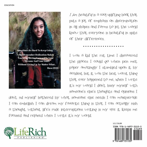 I Am Beautiful is a cool uplifting book that puts a lot of emphasis on discrimination in all shapes and forms to let the world know that everyone is beautiful in spite of their differences.