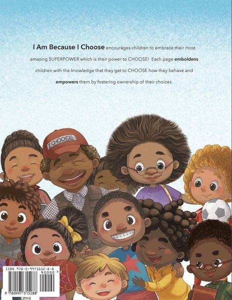 I Am Because I Choose is an engaging picture book that encourages children to embrace their most amazing SUPERPOWER which is their power to choose! The book not only informs the idea that you get to choose your behavior, it also highlights positive consequences that can result from making good choices. I Am Because I Choose helps to facilitate the core competencies of Social Emotional Learning. It highlights the important connection between behavior and personal choice, thus promoting self-accountability and self-awareness; which consequently results in better decision making. This emboldens…mehr