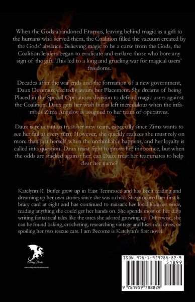 When the Gods abandoned Eturnus, leaving behind magic as a gift to the humans who served them, the Coalition filled the vacuum created by the Gods' absence. Believing magic to be a curse from the Gods, the Coalition leaders began to eradicate and enslave those who bore any sign of the gift. This led to a long and grueling war for magical users' freedoms. Decades after the war ends and the formation of a new government, Daux Deveraux excitedly awaits her Placement. She dreams of being Placed in the Special Operations division to defend magic users against the Coalition. Daux gets her wish but is left incredulous when the infamous Zima Angelov is assigned to her team of operatives. Daux is reluctant to trust her new team, especially since Zima wants to see her fail at every turn. However, she quickly realizes she must rely on more than just herself when the unthinkable happens, and her loyalty is called into question. Daux must fight to prove her innocence, but when the odds are stacked against her, can Daux trust her teammates to help clear her name?