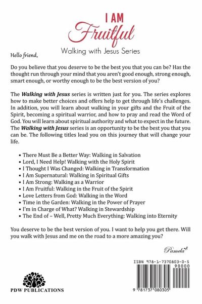 God never intended for the Christian life to be powered by human effort alone. He fills His children with His Spirit, and through that relationship, His character grows in us and shines through us. I Am Fruitful: Walking in the Fruit of the Spirit invites believers to cultivate the nine-fold fruit listed in Galatians 5 and live from the inside out with love, joy, peace, patience, kindness, goodness, faithfulness, gentleness, and self-control. This book teaches what spiritual fruit really is, how it is formed, and how to overcome the attitudes and habits that hinder growth. Through biblical teaching, reflection questions, and practical examples, you'll learn how to: ¿ Cooperate with the Holy Spirit as He transforms you ¿ Cultivate godly attitude and character in everyday life ¿ Recognize spiritual hindrances like fear, comparison, and worry ¿ Grow strong in trials and remain fruitful in the valley ¿ Reflect Jesus to the world with a life that bears good fruit This isn't about self-improvement; it's about Spirit-empowerment. You were created to be fruitful, and God delights in your growth. As you walk with Him daily, the Spirit will shape you into the image of Christ and impact everyone around you. Part of the Walking With Jesus discipleship series, this book equips believers to grow in Christlike character and live a Spirit-led life every day.