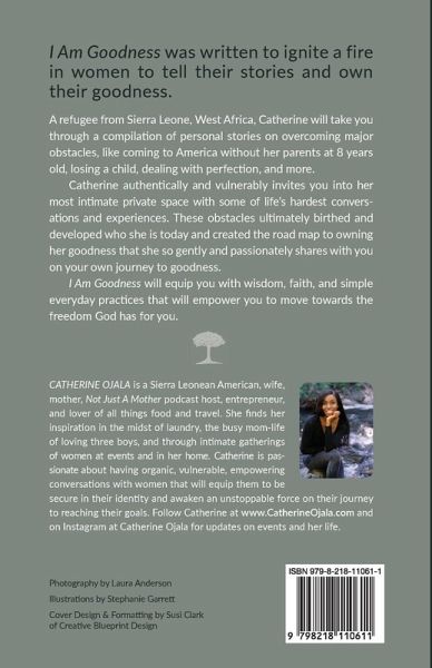 I Am Goodness was written to ignite a fire in women to tell their stories and walk in their goodness. As women, we can find it easier to support and empower other women than it is to support ourselves. Catherine found herself in that same position as a public speaker and author. She has always loved encouraging and empowering goodness in others' lives, but found it more difficult when it came to doing so for herself. A refugee from Sierra Leone, West Africa, Catherine will take you through a compilation of personal stories of overcoming major obstacles like coming to America without her parents at 8 years old, to losing a child, dealing with perfection and more. Catherine authentically and vulnerably invites you into her most intimate private space with some of life's hardest conversations and experiences. These obstacles ultimately birthed and developed who she is today and created the road map to owning her goodness that she so gently and passionately shares with you for your own journey to goodness. I Am Goodness will equip you with wisdom, faith, and simple every day practices that will empower you to move towards the freedom God has for you. Catherine's casual yet raw style of storytelling will motivate you to make bold creative moves, draw healthy sustainable boundaries, and leave you laughing and feeling seen and accepted. She shares how to own your goodness which can bring you healing and ultimately freedom.