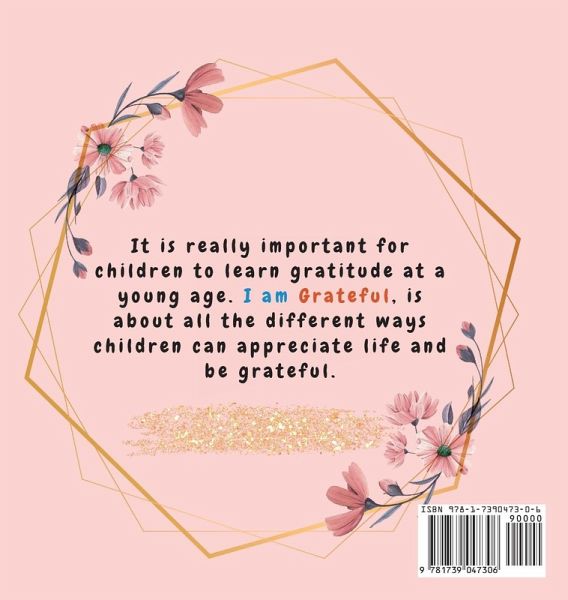 It is crucial for children to learn gratitude at a young age. "I Am Grateful" explores the various ways in which children can appreciate life and express their gratitude. In a world filled with wonders, "I Am Grateful" is a heartwarming exploration of the boundless potential of gratitude. This enchanting book invites children to embark on a journey of appreciation, where they'll discover countless ways to express gratitude and cherish the beauty of life, both big and small. Gratitude is not just a word; it's a powerful force that can shape young hearts in profound ways. When children learn the art of being grateful, they unlock a treasure trove of emotions-love, appreciation, generosity, and compassion-that light up their world and create a lasting impact. "I Am Grateful" shows that gratitude is not merely a virtue; it's a path to happiness and optimism. This captivating book is an invaluable resource for teachers seeking to instill the spirit of gratitude in their students, as well as parents looking to share the essential lessons of thankfulness. "I Am Grateful" can be the perfect bedtime story, a heartfelt reminder to give thanks for all the blessings, big or small, that grace our lives each day. As you turn the pages of "I Am Grateful," you'll witness the joy and wonder that gratitude can bring. This book is more than just a story; it's a tool to nurture the seeds of gratitude in young hearts, inspiring a sense of contentment, generosity, and love that will last a lifetime. It's a celebration of the simple joys in life, a reminder that even in the most ordinary moments, there is always something to be grateful for. Join us on this extraordinary journey of gratitude, and let "I Am Grateful" illuminate the path to happiness and optimism for the young ones you hold dear. Embrace the power of gratitude, and watch as it transforms the hearts and minds of the children who read or listen to this beautiful story.