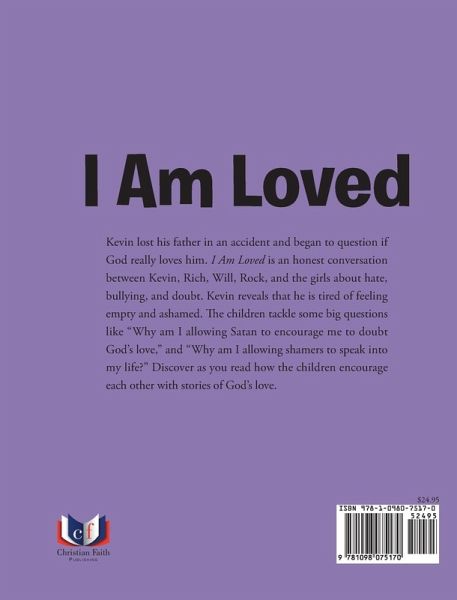 Kevin lost his father in an accident and began to question if God really loves him. I Am Loved is an honest conversation between Kevin, Rich, Will, Rock, and the girls about hate, bullying, and doubt. Kevin reveals that he is tired of feeling empty and ashamed. The children tackle some big questions like Why am I allowing Satan to encourage me to doubt Gods love, and Why am I allowing shamers to speak into my life? Discover as you read how the children encourage each other with stories of Gods love.