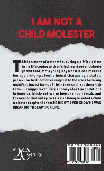 This is a story of a man who, during a difficult time in his life coping with a failed marriage and single parenthood, met a young lady who misled him about her age bringing about criminal charges by a state's prosecutor hell bent on nailing him to the cross for being one of the lowest forms of life in their small southern hick town - a nigger lover. This is a story about race relations in America, black-and-white love and heartbreak, and the events that led up to this man being branded a child molester despite the fact HE DIDN'T EVEN KNOW HE WAS BREAKING THE LAW. FOR LIFE. With all the news this past decade about women in the 'Me Too' movement coming forward to reveal violations perpetrated upon them years ago most often by men, what about me when a young girl misled me about her age which led to me getting arrested and convicted and yet I NEVER EVEN KNEW I WAS BREAKING THE LAW! So I ask you what about me?