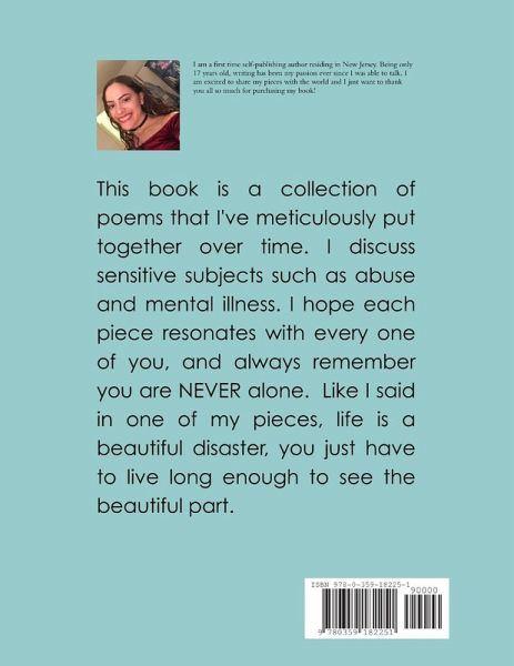 This book is a collection of poems I've put together over time. It includes topics such as abuse and mental illness. The content I include displays my personal experiences, along with real life advice and tips. It contains a contradicting aspect, displaying both sides of recovery and heart break. The purpose of this compilation of poems is to provide support and connection with those who may be currently going through the same things or who have previously found themselves in similar predicaments.