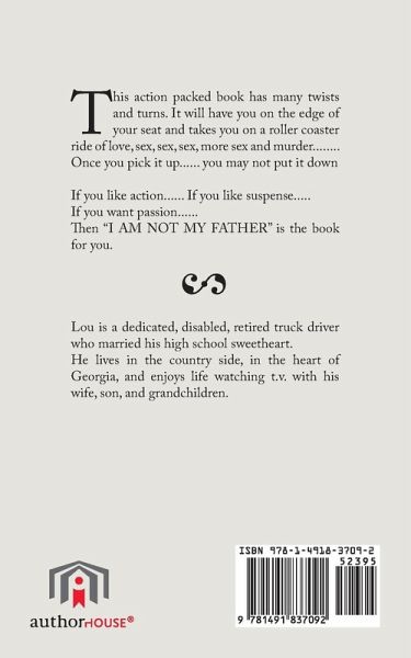 This action packed book has many twists and turns. It will have you on the edge of your seat and takes you on a roller coaster ride of love, sex, sex, sex, more sex and murder........ Once you pick it up...... you may not put it down If you like action...... If you like suspense..... If you want passion...... Then "I AM NOT MY FATHER" is the book for you.