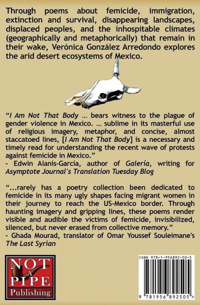 Verónica González Arredondo (Guanajuato, Mexico) holds a PhD in Arts from the Universidad de Guanajuato and a Master's in Philosophy from the Universidad de Zacatecas. She has received several prestigious Latin American literary awards, including Mexico's National Ramón López Velarde Prize in Poetry/Premio Nacional de Poesía "Ramón López Velarde," for her book of poems Ese cuerpo no soy/I Am Not That Body (Universidad Autónoma de Zacatecas, 2015) as well as the Dolores Castro Prize /Premio Dolores Castro, an annual prize awarded to a woman writing exceptional and socially conscious work in Spanish, for her book Verde Fuegos de Espíritus/Green Fires of the Spirits (Ayuntamiento de Aguascalientes, 2014). Voracidad, grito y belleza animal/Voraciousness, Screams and Animal Beauty, a book of essays, was also published by Universidad Autónoma de Zacatecas in 2014. Verónica González Arredondo's books of verse have previously been translated into, and published in, French and Portuguese. From 2017-2018 she held a FONCA fellowship for younger artists through the Fondo Nacional para la Culturas y las Artes/National Fund for Arts and Culture. "Al aire el cuerpo duele"/"The Body Pains the Wind," a section in Verónica González Arredondo's award-winning second book Ese cuerpo no soy/I Am Not that Body references a line from Dolores Castro's verse.