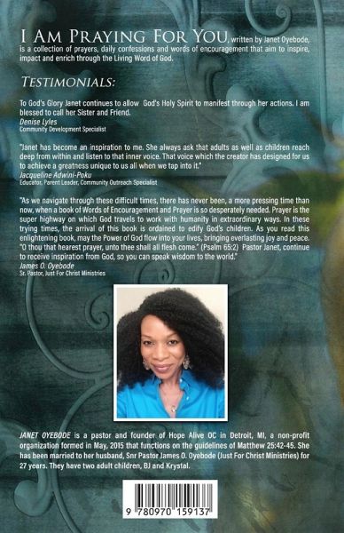 "I AM Praying For You" is a collection of prayers, daily confessions, and words of encouragement that aim to inspire, impact and enrich the readers life through the Living Word of God. Grab a copy for yourself, your family, and your friends!