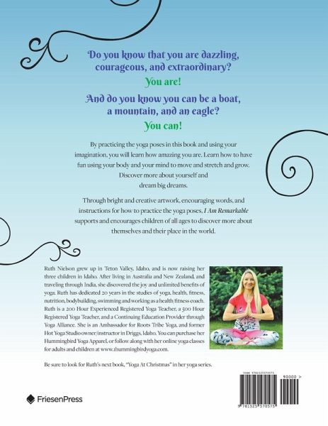 Do you know that you are dazzling, courageous, and extraordinary? You are! And do you know you can be a boat, a mountain, and an eagle? You can! By practicing the yoga poses in this book and using your imagination, you will learn how amazing you are. Learn how to have fun using your body and your mind to move and stretch and grow. Discover more about yourself and dream big dreams. Through bright and creative artwork, encouraging words, and instructions for how to practice the yoga poses, I Am Remarkable supports and encourages children of all ages to discover more about themselves and their place in the world.