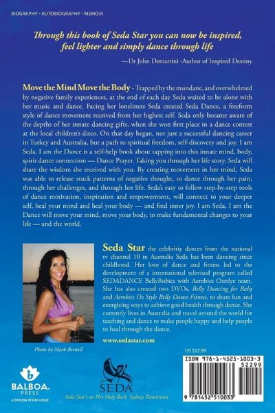 "Through this book of Seda Star you can now be inspired, feel lighter and simply dance through life." -Dr John Demartini -Author of Inspired Destiny Move the Mind Move the Body - Trapped by the mundane, and overwhelmed by negative family experiences, at the end of each day Seda waited to be alone with her music and dance. Facing her loneliness Seda created Seda Dance, a freeform style of dance movement received from her highest self. Seda only became aware of the depths of her innate dancing gifts, when she won first place in a dance contest at the local children's disco. On that day began, not just a successful dancing career in Turkey and Australia, but a path to spiritual freedom, self-discovery and joy. I am Seda, I am the Dance is a self-help book about tapping into this innate mind, body, spirit dance connection - Dance Prayer. Taking you through her life story, Seda will share the wisdom she received with you. By creating movement in her mind, Seda was able to release stuck patterns of negative thought, to dance through her pain, through her challenges, and through her life. Seda's easy to follow step-by-step tools of dance motivation, inspiration and empowerment, will connect to your deeper self, heal your mind and heal your body - and find inner joy. I am Seda, I am the Dance will move your mind, move your body, to make fundamental changes to your life - and the world.