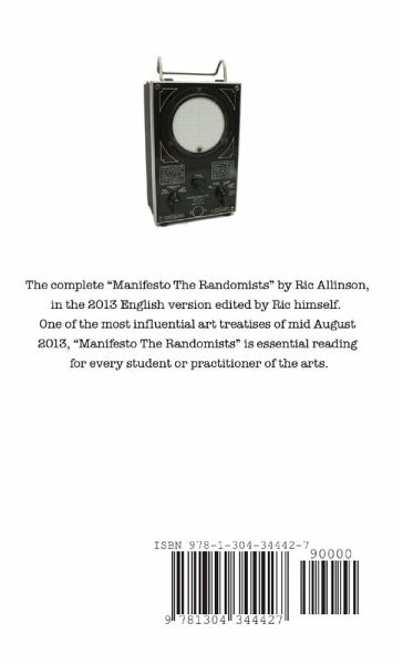 The complete "Manifesto The Randomists" by Ric Allinson, in the 2013 English version edited by Ric himself. One of the most influential art treatises of mid August 2013, "Manifesto The Randomists" is essential reading for every student or practitioner of the arts.