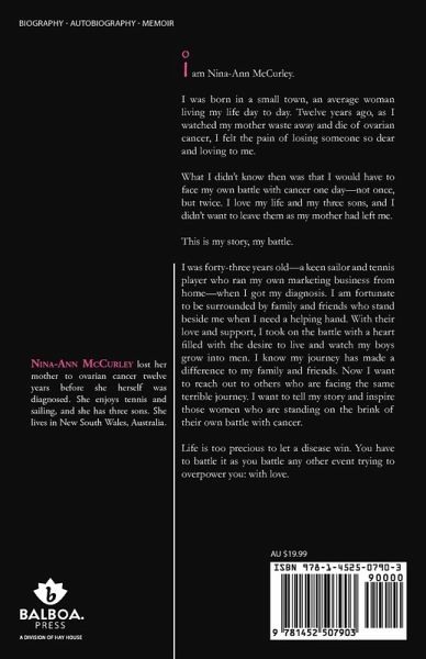 I am Nina-Ann McCurley. I was born in a small town, an average woman living my life day to day. Twelve years ago, as I watched my mother waste away and die of ovarian cancer, I felt the pain of losing someone so dear and loving to me. What I didn't know then was that I would have to face my own battle with cancer one day-not once, but twice. I love my life and my three sons, and I didn't want to leave them as my mother had left me. This is my story, my battle. I was forty-three years old-a keen sailor and tennis player who ran my own marketing business from home-when I got my diagnosis. I am fortunate to be surrounded by family and friends who stand beside me when I need a helping hand. With their love and support, I took on the battle with a heart filled with the desire to live and watch my boys grow into men. I know my journey has made a difference to my family and friends. Now I want to reach out to others who are facing the same terrible journey. I want to tell my story and inspire those women who are standing on the brink of their own battle with cancer. Life is too precious to let a disease win. You have to battle it as you battle any other event trying to overpower you: with love.
