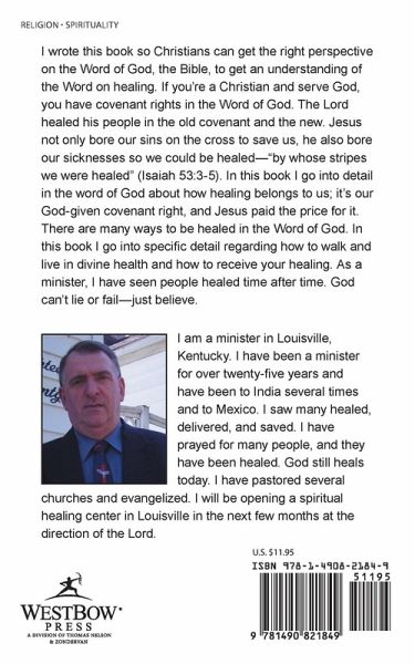 I wrote this book so Christians can get the right perspective on the Word of God, the Bible, to get an understanding of the Word on healing. If you're a Christian and serve God, you have covenant rights in the Word of God. The Lord healed his people in the old covenant and the new. Jesus not only bore our sins on the cross to save us, he also bore our sicknesses so we could be healed-"by whose stripes we were healed" (Isaiah 53:3-5). In this book I go into detail in the word of God about how healing belongs to us; it's our God-given covenant right, and Jesus paid the price for it. There are many ways to be healed in the Word of God. In this book I go into specific detail regarding how to walk and live in divine health and how to receive your healing. As a minister, I have seen people healed time after time. God can't lie or fail-just believe.