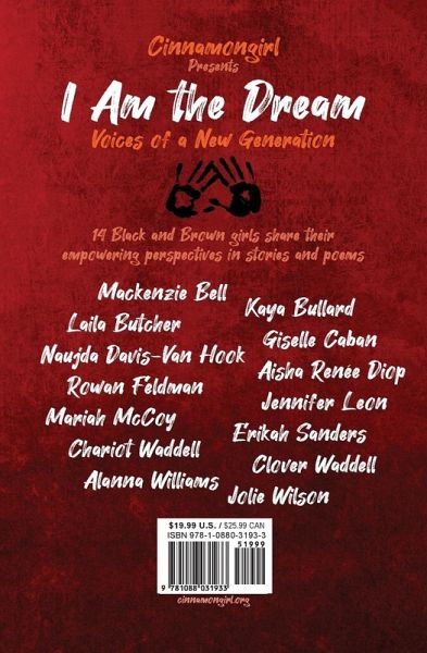 Authors Mackenzie Bell, Kaya Bullard, Laila Butcher, Giselle Caban, Naujda Davis-Van Hook, Aisha Renée Diop, Rowan Feldman, Jennifer Leon, Mariah McCoy, Erikah Sanders, Chariot Waddell, Clover Waddell, Alanna Williams, and Jolie Wilson share their empowering perspectives in stories, memoir pieces, and poems. In its second year in 2022, Write Your Story is an exciting year-long program that brought creative writing masterclasses and artistic mentorship to young women of color, ages 12 to 18, a fabulous collaboration of Cinnamongirl, Inc. and the Bay Area Book Festival. The first cohort of girls spent a year honing their voices, their visions, and their craft, with instruction and encouragement from a faculty of acclaimed women authors of color like Rena Barron, Paulette Boudreaux, Lisa Moore Ramée, Michelle Mush Lee, Deborah Santana, Nikki Shannon Smith, Misa Sugiura, Arisa White, and many others. These 14 Black and Brown girls now present their work to the public in this remarkable inaugural anthology, I AM THE DREAM: Voices of a New Generation.