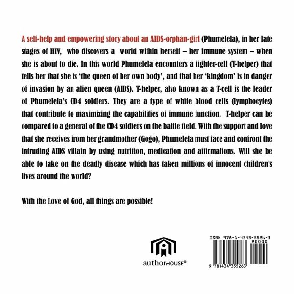 A self-help and empowering story about an AIDS-orphan-girl (Phumelela), in her late stages of HIV, who discovers a world within herself - her immune system - when she is about to die. In this world Phumelela encounters a fighter-cell (T-helper) that tells her that she is 'the queen of her own body', and that her 'kingdom' is in danger of invasion by an alien queen (AIDS). T-helper, also known as a T-cell is the leader of Phumelela's CD4 soldiers. They are a type of white blood cells (lymphocytes) that contribute to maximizing the capabilities of immune function. T-helper can be compared to a general of the CD4 soldiers on the battle field. With the support and love that she receives from her grandmother (Gogo), Phumelela must face and confront the intruding AIDS villain by using nutrition, medication and affirmations. Will she be able to take on the deadly disease which has taken millions of innocent children's lives around the world? With the Love of God, all things are possible!