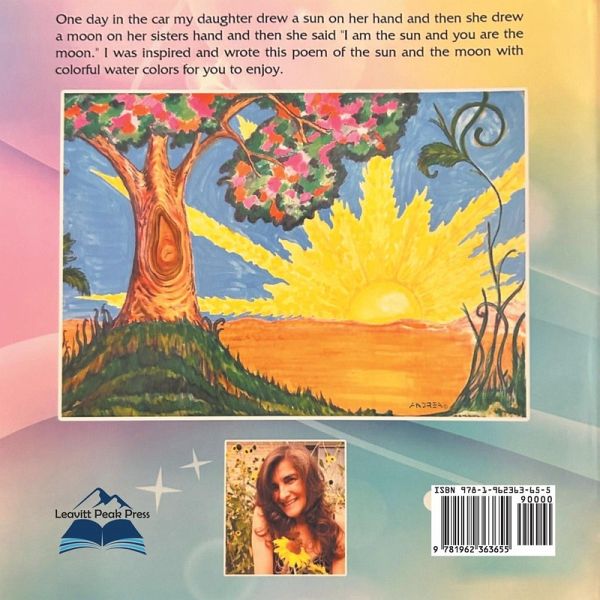 One day in the car my daughter drew a sun on her hand and then she drew a moon on her sisters hand and then she said, "I am the sun and you are the moon." I was inspired and wrote this poem of the sun and the moon with colorful water colors for you to enjoy.
