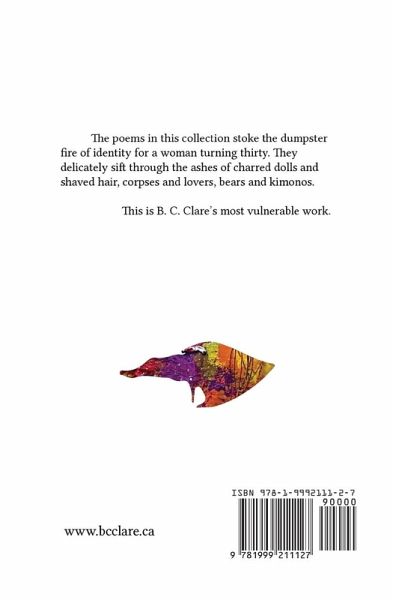 B. C. Clare is a Canadian writer of children's fiction, fantasy fiction, prose poetry, literary criticism, and biblical criticism. Her topics include mental health, religious trauma, Christian mysticism, gender liberation, and decolonization. The poems in this collection stoke the dumpster fire of identity for a woman turning thirty. They delicately sift through the ashes of charred dolls and shaved hair, corpses and lovers, bears and komonos. This is B. C. Clare's most vulnerable work.