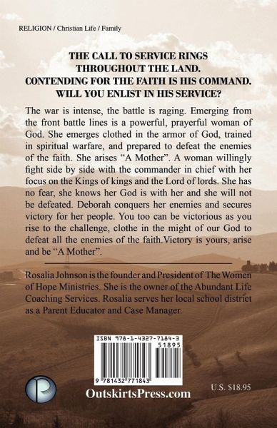The war is intense, the battle is raging. Emerging from the front battle lines is a powerful, prayerful woman of God. She emerges clothed in the armor of God, trained in spiritual warfare, and prepared to defeat the enemies of the faith. She arises "A Mother". A woman willingly fights side by side with the commander in chief with her focus on the King of kings and the Lord of lords. She has no fear, she knows her God is with her and she will not be defeated. Deborah conquers her enemies and secures victory for her people. You too can be victorious as you rise to the challenge, clothe in the might of our God to defeat all the enemies of the faith. Victory is yours, arise and be "A Mother".