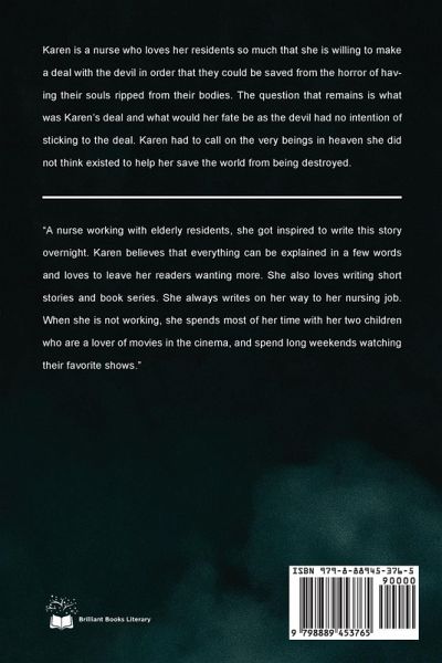 Karen is a nurse who loves her residents so much that she is willing to make a deal with the devil in order that they could be saved from the horror of having their souls ripped from their bodies. The question that remains is what was Karen's deal and what would her fate be as the devil had no intention of sticking to the deal. Karen had to call on the very beings in heaven she did not think existed to help her save the world from being destroyed.