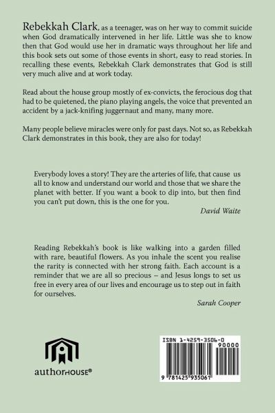 Read about the house group mostly of ex-convicts, the ferocious dog that had to be quietened, the piano playing angels, the voice that prevented an accident by a jack-knifing juggernaut and many, many more stories from the life and experience of Rebekkah Clark. Many people believe miracles were only for past days. Not so, as Rebekkah Clark demonstrates in this book, they are also for today! A reviewer writes: Reading Rebekkah's book is like walking into a garden filled with rare, beautiful flowers. As you inhale the scent you realise the rarity is connected with her strong faith. Each account is a reminder that we are all so precious to Jesus.