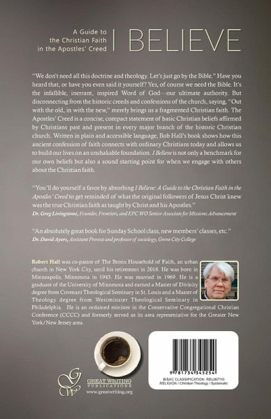 "We don't need all this doctrine and theology. Let's just go by the Bible." Have you heard that, or have you even said it yourself ? Yes, of course we need the Bible. It's the infallible, inerrant, inspired Word of God-our ultimate authority. But disconnecting from the historic creeds and confessions of the church, saying, "Out with the old, in with the new," merely brings us a fragmented Christian faith. The Apostles' Creed is a concise, compact statement of basic Christian beliefs affirmed by Christians past and present in every major branch of the historic Christian church. Written in plain and accessible language, Bob Hall's book shows how this ancient confession of faith connects with ordinary Christians today and allows us to build our lives on an unshakable foundation. I Believe is not only as a benchmark for our own beliefs but also a sound starting point for when we engage with others about the Christian faith.