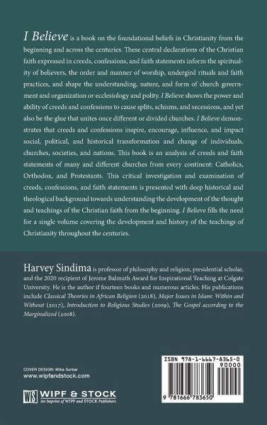 I Believe is a book on the foundational beliefs in Christianity from the beginning and across the centuries. These central declarations of the Christian faith expressed in creeds, confessions, and faith statements inform the spirituality of believers, the order and manner of worship, undergird rituals and faith practices, and shape the understanding, nature, and form of church government and organization or ecclesiology and polity. I Believe shows the power and ability of creeds and confessions to cause splits, schisms, and secessions, and yet also be the glue that unites once different or divided churches. I Believe demonstrates that creeds and confessions inspire, encourage, influence, and impact social, political, and historical transformation and change of individuals, churches, societies, and nations. This book is an analysis of creeds and faith statements of many and different churches from every continent: Catholics, Orthodox, and Protestants. This critical investigation and examination of creeds, confessions, and faith statements is presented with deep historical and theological background towards understanding the development of the thought and teachings of the Christian faith from the beginning. I Believe fills the need for a single volume covering the development and history of the teachings of Christianity throughout the centuries.