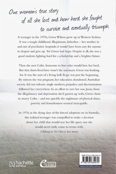 Rape, teen pregnancy, illegitimacy, domestic abuse - in 1970s Australia all were shameful secrets that trapped women in poverty, loss and ongoing emotional trauma. This is one woman's story of all she lost and how hard she fought to survive.
