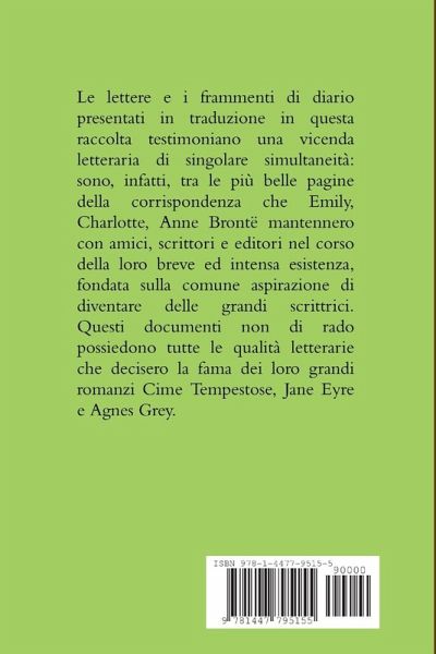 Si presenta qui, in traduzione, una selezione delle lettere e pagine di diario che i Brontë si indirizzarono reciprocamente durante l'adolescenza e giovinezza, unitamente a qualche traduzione dalla corrispondenza extra-familiare con amici, scrittori ed editori nel corso della loro intensa esistenza. Questi frammenti epistolari non di rado possiedono le qualità letterarie che decisero la fama dei romanzi di Emily, Charlotte e Anne, Cime Tempestose, Jane Eyre e Agnes Grey.