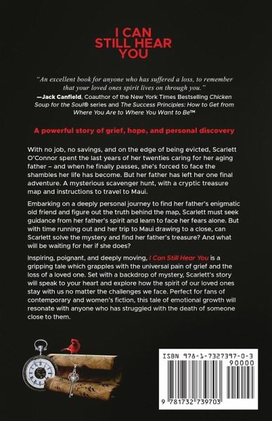 "An excellent book for anyone who has suffered a loss, to remember that your loved ones spirit lives on through you." -Jack Canfield, Coauthor of the New York Times Bestselling Chicken Soup for the Soul® series and The Success Principles: How to Get from Where You Are to Where You Want to Be(TM) I Can Still Hear You is a powerful and deeply moving story which grapples with the universal pain of grief and the loss of a loved one. When Scarlett O'Connor loses her father at the age of thirty, she's forced to face the shambles that her life has become. With no money and no savings, the only thing that waits for her is a cryptic map and a mysterious letter. With nothing left to lose, she embarks on a trip to Maui for her father's final adventure-to begin a treasure hunt which will force her to look deep inside herself and come to terms with her pain and grief. Accompanied by her less-than-supportive fiancé, a close childhood friend, and an enigmatic man who was her father's old acquaintance, Scarlett must decode the mystery and find the hidden treasure. But she knows she must face her fears alone and calling upon the spirit of her father for guidance, she struggles to reconcile her emotions and uncover the treasure before her time in Maui comes to an end. Perfect for fans of contemporary and women's fiction, I Can Still Hear You is a gripping tale which will resonate with anybody who has struggled with the death of someone close. This book is a testament to the fact that even though we may have lost them, our loved ones stay with us no matter what challenges we face.