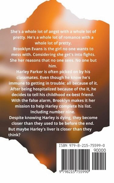 She's a whole lot of angst with a whole lot of beauty. He's a whole lot of romance with a whole lot of pretty. Brooklyn Evans and Harley Parker have known each other since first grade. They were friends up until three years ago; after the crash. After three years apart a fall brings them together. They're both keeping secrets. He's dying without a liver transplant. She's missed him no matter how cold she seems. Navigating the twists and turns of dating, dying, and secert keeping are not easy. But together will they make it work?
