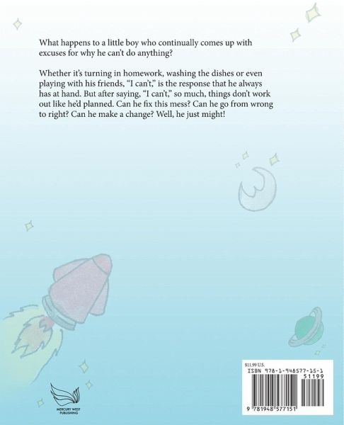 What happens to a little boy who comes up with continuous excuses as to why he can't do anything? Turn in homework. Wash the dishes. Play with his friends. "I can't," is his response that gets him out of chores and other responsibilities. At first he enjoys his new freedom, but things don't always go as planned. Is there anything he can do to fix it?