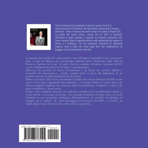 Il testo si propone di individuare una possibile metodologia di studio e restauro dei centri antichi. Ripercorre le principali fasi della storia del restauro relativa ai centri storici dal Settecento in poi e pubblica documenti inediti sulla storia di Castel Sant'Angelo, importante centro sito nel Territorio di Aquila riproponendo l'importanza di una normativa precisa e aggiornata tesa a tutelare i caratteri peculiari dei luoghi.