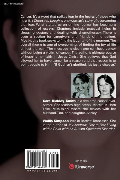 Cancer. It's a word that strikes fear in the hearts of those who hear it. I Choose to Laugh is one woman's story of overcoming that fear. What started as an on-line journal has become a collection of essays. Chapters include practical helps in choosing doctors and dealing with chemotherapy. There is even a section for caregivers and friends of the patient. Mostly, this book seeks to find the laughter of the moment. The overall theme is one of overcoming, of finding the joy of life amidst the pain. The message is clear; one can have cancer without being a victim of cancer. The author's ultimate source of hope is her faith in Jesus Christ. She believes that God allowed her to have cancer for a reason and that reason is to point people to Him. "If God isn't glorified, it's just a disease."