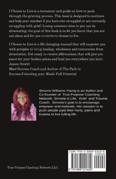 I Choose to Live is a testament and guide on how to push through the grieving process. This book is designed to motivate and help your mindset if you have ever struggled or are currently struggling with grief. Losing someone close to you can be devastating; the goal of this book is to let you know that you are not alone and for you to strive to choose to live.