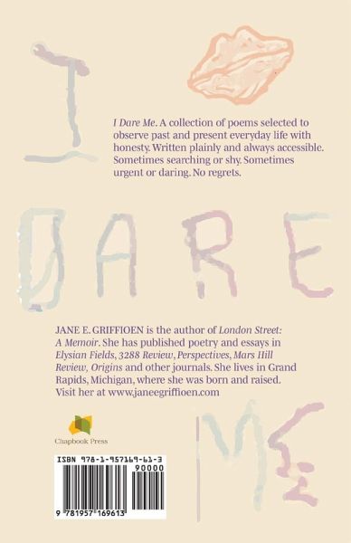 A collection of poems selected to observe past and present everyday life with honesty. Written plainly and always accessible. Sometimes shy or searching. Sometimes urgent or daring. No regrets. JANE E. GRIFFIOEN is the author of London Street: A Memoir (see link below). She has published poetry and essays in Elysian Fields, 3288 Review, Perspectives, Mars Hill Review, Origins and other journals. She lives in Grand Rapids, Michigan, where she was born and raised. Visit her at www.janeegriffioen.com.