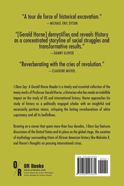 I Dare Say: A Gerald Horne Reader is a timely and essential collection of the many works of Professor Gerald Horne-a historian who has made an indelible impact on the study of US and international history. Horne approaches his study of history as a deeply politically engaged scholar, with an insightful and necessarily partisan stance, critiquing the lasting reverberations of white supremacy and all its bedfellows-imperialism, colonialism, fascism and racism-which continue to wreak havoc in the United States and abroad to this day. Drawing on a career that spans more than four decades, The Gerald Horne Reader will showcase the many highlights of Horne's writings, delving into discussions of the United States and its place on the global stage, the curation of mythology surrounding titans of 20th Century African American history like Malcolm X, and Horne's thoughts on pressing international crises of the 21st Century including the war in Afghanistan during the early 2000s, and the war in Ukraine which erupted in February 2022. As we continue to observe the chaos of our current times, I Dare Say: A Gerald Horne Reader foregrounds a firmly rooted, consistent analysis of what has come to pass-and provides illuminating insight that better informs where we may be headed, and outlines what needs to be done to stem the tide of growing fascism across the Western world.