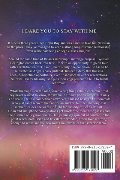 It's been three years since Brian Royland was dared to take Iris Newman to the prom. They've managed to keep a strong long-distance relationship even while balancing college classes and jobs. Around the same time of Brian's impromptu marriage proposal, William Lexington comes back into Iris' life with an opportunity to go on tour with a well-known rock band. There's only one condition; he has to be reinstated as Angst's bass guitarist. Iris can't deny that this is a once-in-a-lifetime opportunity, even if she does have her reservations. So, with Brian's blessing, she puts their engagement on hold to fulfill her dream. While the band's on the road, discovering things about each other that they never wanted to know, the drama in Brian's life escalates. Not only is he dealing with a competitive coworker, a biased boss, and a roommate who just can't seem to take no for an answer, but then his long-lost mother decides she wants to fight for custody of Leah after all. Brian and Iris' phone conversations get shorter the more time passes and the distance only grows wider. Things quickly spin out of control, to the point where both Brian and Iris start to wonder if their love is strong enough to withstand the new miles and obstacles that separate them.