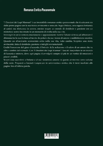 "I Desideri dei Lupi Mannari" è un irresistibile romanzo erotico paranormale che ti catturerà sin dalle prime pagine con la sua trama avvincente e sensuale. Segui Delanie, una ragazza fortunata al casinò ma sfortunata in amore, mentre scopre un mondo di desiderio e passione con un misterioso uomo incontrato in un momento di svolta nella sua vita.Immergiti in un'avventura emozionante e appassionante mentre Delanie si trova ad affrontare il dilemma tra la sua fortuna al tavolo da poker e la sua ricerca di amore e soddisfazione emotiva. Quando un affascinante sconosciuto entra nella sua vita, tutto cambia. Scoprirai una storia avvincente, fatta di desiderio, passione e intrighi sovrannaturali.Goditi l'emozione del gioco d'azzardo, il brivido della seduzione e il calore di un amore che va oltre i confini del normale. Con "I Desideri dei Lupi Mannari", lasciati trasportare in un mondo di lussuria e mistero, dove ogni pagina ti avvolgerà sempre di più in un vortice di emozioni e piaceri proibiti.Scopri cosa succederà a Delanie e al suo misterioso amante in questo avvincente terzo volume della serie. Preparati a lasciarti trasportare in un'avventura erotica che ti terrà incollato alle pagine fino all'ultima parola.