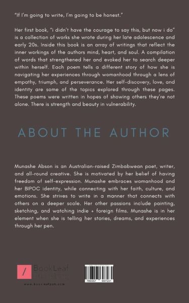"""If I'm going to write, I'm going to be honest." Her first book, "i didn't have the courage to say this, but now i do" is a collection of works she wrote during her late adolescence and early 20s. Inside this book is an array of writings that reflect the inner workings of the authors mind, heart, and soul. A compilation of words that strengthened her and evoked her to search deeper within herself. Each poem tells a different story of how she is navigating her experiences through womanhood through a lens of empathy, triumph, and perseverance. Her self-discovery, love, and identity are some of the topics explored through these pages. These poems were written in hopes of showing others they're not alone. There is strength and beauty in vulnerability.""