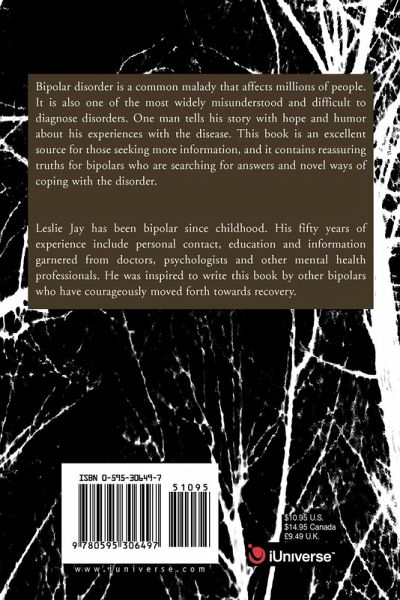 Bipolar disorder is a common malady that affects millions of people. It is also one of the most widely misunderstood and difficult to diagnose disorders. One man tells his story with hope and humor about his experiences with the disease. This book is an excellent source for those seeking more information, and it contains reassuring truths for bipolars who are searching for answers and novel ways of coping with the disorder.