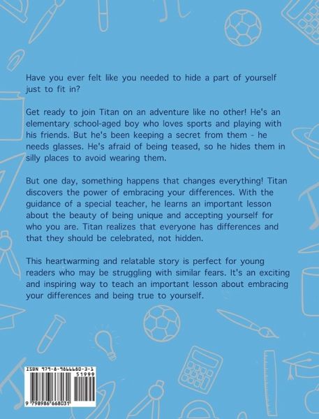 This entertaining kids book follows the story of Titan, a young boy that doesn't want to wear his glasses and hides them because he is afraid his friends will make fun of him. Despite his parents' efforts, he refuses to wear his new glasses. Will the encouragement of a thoughtful teacher and his friends be enough to change his mind? An avid reader who is a mother and author who enjoys wiring books that contain poetry and educational tools for children.