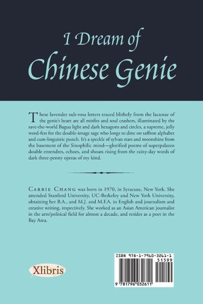 These lavender sub-rosa letters traced blithely from the lacunae of the genie's heart are all misfits and soul crashers, illuminated by the save-the-world Bagua light and dark hexagons and circles, a supreme, jolly word-fest for the double-image sage who longs to dine on saffron alphabet and cum-linguistic punch. It's a speckle of sylvan stars and moonshine from the basement of the Sinophilic mind-glorified poems of superpalazzo double entendres, echoes, and shouts rising from the rainy-day words of dark three-penny operas of my kind.