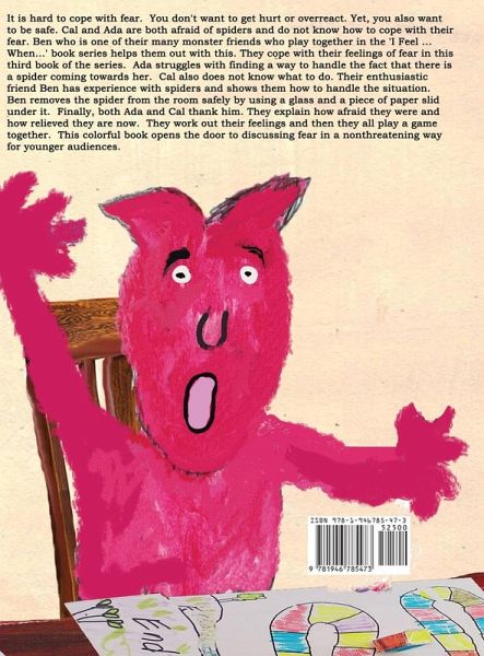 It is hard to cope with fear. You don't want to get hurt or overreact. Yet you also want to be safe. Cal and Ada are both afraid of spiders and do not know how to cope with their fear. Ben who is one of their many monster friends who play together in the 'I Feel When' book series helps them out with this. They cope with their feelings of fear in this second book of the series. Ada struggles with finding a way to handle the fact that there is a spider coming towards her. Cal also does not know what to do. Their enthusiastic friend Ben has experience with spiders and shows them how to handle the situation. Ben removes the spider from the room safely by using a glass and a piece of paper slid under it. Finally, both Ada and Cal thank him. They explain how afraid they were and how relieved they are now. They work out their feelings and then they all play a game together. This colorful book opens the door to discussing fear in a nonthreatening way for younger audiences. It also uses nonviolent communication as described on the YouTube channel 'Dealing with Feelings' by psychotherapist Dr. Jim Porter and Karen Porter in their weekly show 'Feeling Fridays'. The husband-and-wife team invites you to explore feelings with your young reader as they begin to read. See how these furry friends learn appropriate ways to express feelings and solve problems by coping with their feelings through listening to one another and observing each other without judgement, expressing feelings and needs, and coping with feelings in compassionate helpful ways.
