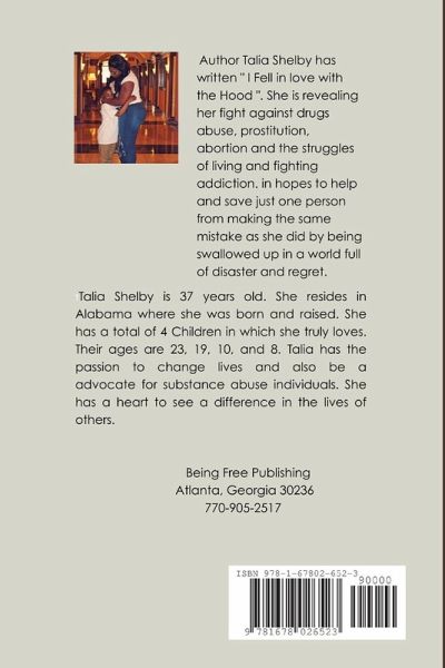 I fell in love with the hood, reveals the authors fight against drug abuse, prostitution, and the struggles of living and fighting addiction, In hopes to help and save just one person from making the same mistakes as she did by being in love and swallowed up in a world full of disaster and regret