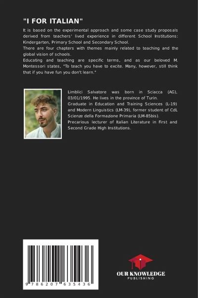 It is based on the experimental approach and some case study proposals derived from teachers' lived experience in different School Institutions: Kindergarten, Primary School and Secondary School.There are four chapters with themes mainly related to teaching and the global vision of schools.Educating and teaching are specific terms, and as our beloved M. Montessori states, "To teach you have to excite. Many, however, still think that if you have fun you don't learn."