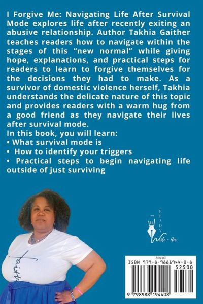 Have you ever reflected on your life and wondered, "What in the world was I thinking? And why?" It's ok. We all have, especially if you're recovering from an abusive or toxic relationship. Survival Mode can be good, but it shouldn't be permanent. It's time to forgive ourselves for the questionable choices we had to make. Let's get started! In this book, you will have the opportunity to explore how you ended up in survival mode, identify the triggers that may send you running back, and then work through stages to begin to navigate life as you move from survivor to thriver. I Forgive Me: Navigating Life After Survival Mode explores life after recently exiting an abusive relationship. Author Takhia Gaither teaches readers how to navigate within the stages of this "new normal" while giving hope, explanations, and practical steps for readers to learn to forgive themselves for the decisions they had to make. As a survivor of domestic violence herself, Takhia understands the delicate nature of this topic and provides readers with a warm hug from a good friend as they navigate their lives after survival mode. In this book, you will learn:What survival mode is To identify your triggers Practical steps to begin navigating life outside of just surviving