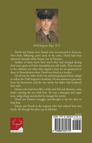 David and Danny were friends who reconnected in Syracuse, New York, following active duty in the army. David had been stationed stateside while Danny was in Vietnam. Neither of them knew how much they had changed during their years apart or if their friendship was still viable. That was put to the ultimate test when they signed a lease for an apartment to share in Pennsylvania where David was hired as a teacher. David was the older of the two and had graduated from college as well at the Drill Sergeant's Academy. He was anxious to get away from his hometown and the war stories his father had burdened him with. Danny, who had been like a wide-eyed kid and dreamer, came home carrying the war with him. He was a damaged and angry man, using drugs and alcohol to manage his terrors. David saw Danny's struggles and thought it was his duty to help him. Danny saw David as the sergeant who had ordered him into battle. He thought his duty was to kill him.