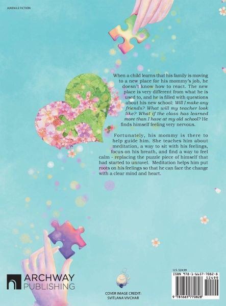 "#1 National Bestseller on Amazon & Barnes & Noble" When a child learns that his family is moving to a new place for his mommy's job, he doesn't know how to react. The new place is very different from what he is used to, and he is filled with questions about his new school: Will I make any friends? What will my teacher look like? What if the class has learned more than I have at my old school? He finds himself feeling very nervous. Fortunately, his mommy is there to help guide him. She teaches him about meditation, a way to sit with his feelings, focus on his breath, and find a way to feel calm - replacing the puzzle piece of himself that had started to unravel. Meditation helps him put roots on his feelings so that he can face the change with a clear mind and heart.